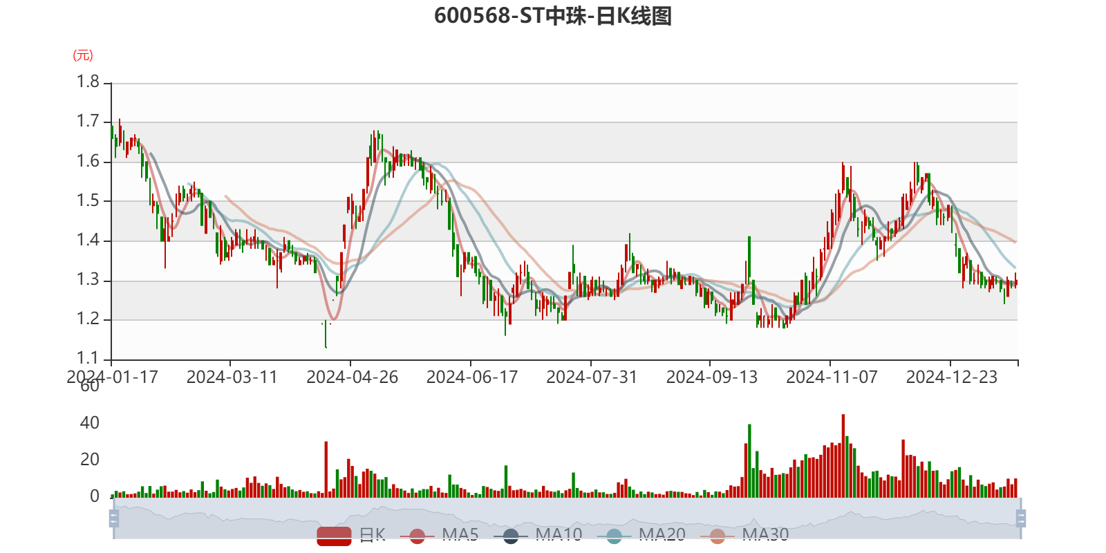 中证智能财讯 ST中珠(600568)1月16日晚间披露2024年度业绩预告,预计2024年归母净利润亏损5亿元至7亿元,上年同期亏损3.44亿元;扣非净利润亏损5亿元至7亿元,上年同期亏损3.72亿元。以1月16日收盘价计算,ST中珠目前市盈率(TTM)约为-3.7倍至-5.18倍,市净率(LF)约1.14倍,市销率(TTM)约4.04倍。